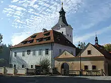 The Dobřichovice Castle retains its Baroque appearance from the 18th century. The castle Chapel of Saint Jude the Apostle next to the castle was built in 1679. Until 1948, the castle served as a summer residence of the grand masters of Knights of the Cross with the Red Star. Today it is owned again by the order and inaccessible to the public.[6]