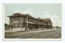 The station was added to and remodeled several times in the style of the original structure. An addition was made between 1907 and 1909 to the first and second floors on the west end to add hotel rooms. An addition built between 1912 and 1914 to first and second floors of the east end added railway employee offices and sleeping spaces, and expanded the Harvey House lunchroom and dining room. The north facade was changed and a basement added for Harvey House food preparation and storage between 1924 and 1925. The station is of two stories with a three-story center section, constructed of stone, red-brick and terra cotta.