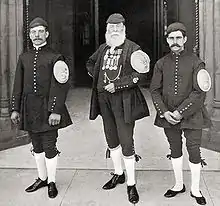 The winner's prize is a traditional watermen's red coat with a silver badge added, displaying the horse of the House of Hanover and the word "Liberty", in honour of the accession of George I to the throne.[2] In addition, each competitor who completes the course receives a miniature of a Doggett's Badge for their lapel in a ceremony at Watermen's Hall, in silver for the winner and in bronze for the others. Monetary prizes are also awarded by the Fishmongers' Company to the rowing clubs of those taking part, with £1,000 to the winner's club, £600 for second, £400 for third and £200 for fourth.