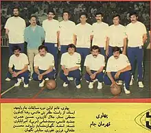 The picture of the Tehran Pahlavi team, the champion of the first Iranian men's club basketball league, the Prince Cup in 1975.