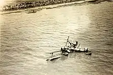 Then, on 11 August, as J. L. Giffin and Theodore S. Lundgren approached Oakland, their aircraft, an International CF-10 Triplane, the Pride of Los Angeles, crashed into San Francisco Bay, but the two men and their passenger, Laurence Willes, were able to escape and swim to shore.[45][46]