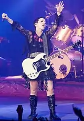 O'Riordan performing with her signature Gibson SG electric guitar in Paris in May 2010[146]