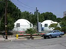 Dome Village was a self-governing community of "people unable or [...] unwilling to live in traditional [homeless] shelters".[1] Located in Downtown Los Angeles at 847 Golden Avenue, the complex consisted of 20 geodesic domes and was inhabited by "up to 34 individuals and their family members". Operated by Justiceville/Homeless USA, a non-profit organization, members of Dome Village were politically active in homelessness, nonviolence, and environmental issues.