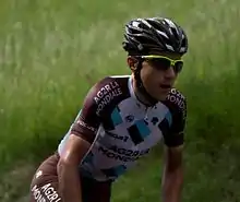 Pozzovivo started his season in January at Australia's Tour Down Under, despite suffering from a minor wrist fracture. He stated he was aiming for a top 5 Overall.[44] He finally finished sixth in the general classification.[45] In March, he went on to finish eighth overall in Tirreno–Adriatico. He grabbed his first victory since 2012 on a stage of the Volta a Catalunya. He was part of a group of seven favorites and he attacked two kilometers from the finish line to win solo on the flat finale, after the race went over several climbs.[46] He finally finished the stage race on the third step of the podium.[47] At the end of April, Pozzovivo participated in the mountainous Giro del Trentino. He lost time on Stage 2, but made up for it by taking the stage victory on Stage 3, distancing Richie Porte and Mikel Landa by five seconds after attacking with two kilometers remaining.[48] He finally finished seventh in the general classification of the race.[49] Two days after the Giro del Trentino concluded, Pozzovivo finished eighth of Liège–Bastogne–Liège as part of the leading group.[50]