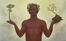 In a wide way, his first work is influenced by Surrealism. This is very popular in Tenerife, since André Breton presented an international exhibition in 1935. Vega says, his work can be fitted in the actual figurative painting. His early works coincide with the beginning of neo-figurative movements and movements such as Anachronism, Pittura Colta or Iper Mannerism, arising in Italy in the late 70's and early 80's. He has also starred symbolism in his works. He was inspired by French symbolist painters and English Pre-Raphaelites. In his recent paintings, the Canarian flora is always present.