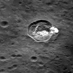 Dominici is a crater on Mercury. Dominici's bright rays indicate that it is relatively young, and the young rays appear light blue in enhanced-color images. Dominici also has bright material on its floor and is surrounded by crater ejecta and material that appears orange in enhanced color. These color differences, as in nearby Titian crater, suggest that the impact crater excavated material from beneath Mercury's surface that differs in composition from the surrounding surface. Dominici lies within a much larger impact structure, the Homer basin.[1]