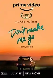 Don't Make Me Go is a 2022 American road trip film directed by Hannah Marks, written by Vera Herbert, and starring John Cho and Mia Isaac. It premiered at the Tribeca Film Festival on June 13, 2022, and was released on Amazon Prime Video on July 15, 2022.[2]