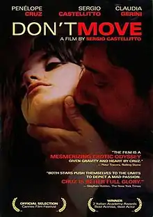 Don't Move (Italian: Non ti muovere) is a 2004 Italian film directed by Sergio Castellitto. It stars Penélope Cruz, Claudia Gerini, Angela Finocchiaro and the director himself. Both Castellitto and Cruz received critical praise for their performances, as well as several awards, including the prestigious David di Donatello. It was screened in the Un Certain Regard section at the 2004 Cannes Film Festival.[1]
