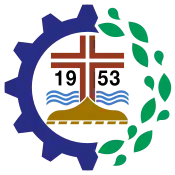 Between the horizontal section of the cross and the salakot is the founding year of the school, 1953, appearing atop three lines. The lines represent the three elements of Don Bosco's Preventive System of Education, namely: Reason (principle-driven life), Religion (spirituality) and Loving Kindness (connectedness and mutuality). The lines which resemble waves, daluyong in the local language, recall the legendary origin of the community of Mandaluyong. Tradition has it that the name of the city where the school is located originated from the abundance of the waves or "mga daluyong".