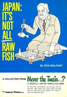 Maloney is probably best known in Japan for his humorous newspaper columns published every Sunday in Tokyo's English-language daily, the Japan Times, entitled Never the Twain...? which dealt exclusively with the experience of an American expatriate living in Japan. In 1975, a collection of his articles from 1970 to 1974 were published in Japan: It's Not All Raw Fish, ISBN 4-7890-0028-1, even used as course material by North Carolina State University; followed by Son of Raw Fish. His accounts of life as lived by a foreigner striving in Japan included episodes involving "Wife Sarah," his four kids (Frances, Barbara, Shawn and Donald Jr.), his Japanese neighbors and all the shopkeepers, coworkers, policemen and folks from every walk of life were grist for his knee-slapping editorial mill. The Maloney family lived next to Yomiuri Giants manager and former superstar Shigeo Nagashima, providing Maloney with a virtually bottomless pool of column material.