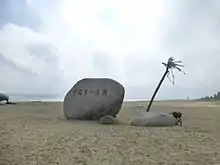 Donghai Island Beach. Writing on rock translates to "China's longest beach".