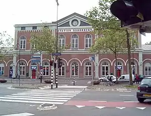 Dordrecht is a railway station in Dordrecht, Netherlands located on the Breda–Rotterdam railway and the Elst–Dordrecht railway. The station was opened on 1 January 1872, when the railway line between Rotterdam and Antwerp was opened. On 16 July 1885, the railway line from Dordrecht to Gorinchem was opened. The neo-Renaissance railway station building is located to the south of the city centre. Dordrecht is now an important railway station on the Nederlandse Spoorwegen railway network. The services to Gorinchem and Geldermalsen are operated by Arriva.