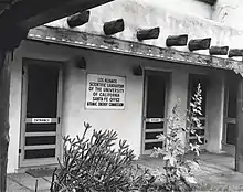 McKibbin's eyesight began to fail in the 1950s. She had cataract operations in 1952, and thereafter needed to wear thick glasses.[41] She died at her home in Santa Fe on December 17, 1985.[42] She was buried in the Santa Fe Memorial Gardens.[43] Dorothy McKibbin Hall at the Los Alamos Historical Museum is named after her. The entrance to the hall is the actual gate that was at 109 East Palace.[44]