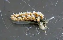 This nudibranch is white or pale brown in colour with dark brown or black markings on the body.[2]