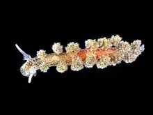 The feathered doto, Doto cf. pinnatifida, taken in 25 m of water on the Atlantic side of the Cape Peninsula. Animals about 15 mm total length.