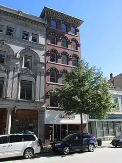 The block was built in 1890 for Charles Doughty by Charles Fletcher, a prominent local builder. The building's styling is somewhat retardaire, as the Italianate was out of fashion when it was built. However, the styling of the windows gives it a suggestion of Renaissance style, which was then coming into fashion.[2]