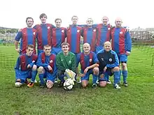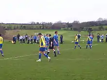 Douglas and District (in yellow) in an Isle of Man FA Cup match against Douglas High School Old Boys F.C. during the 2008–09 season