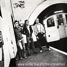 "Down in the Tube Station at Midnight" is a single by the Jam, and was the second single from their third album, All Mod Cons. Released in October 1978, it reached No. 15 on the UK Singles Chart.[1] The single was backed by a cover version of the Who's song "So Sad About Us", and the song "The Night", written by Bruce Foxton.