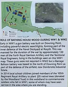The Downing Point Battery was a World War I coastal gun battery defending the Firth of Forth. The battery was constructed in 1914 at Downing Point, then part of the Earl of Moray's Donibristle Estate. The site is now situated within the new town of Dalgety Bay in Fife.