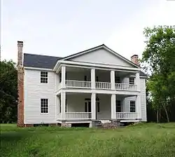 Dr. John Glenn House is a historic home located near Jenkinsville, Fairfield County, South Carolina. It was built about 1845, and is a two-story, five-bay, weatherboarded frame, end-gabled Greek Revival style residence. It has a double-pile and central-hall plan with a rear shed room. The front façade features a two-tiered porch in the three central bays with a pedimented gable end.[2][3]