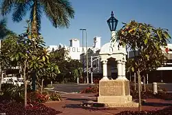 The Dr EA Koch Memorial is located in Anzac Memorial Park, in the west corner of the park close to the intersection of Abbott and Spence Streets. It is set against the backdrop formed by The Reef Hotel Casino complex.[1]