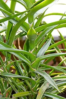 It very closely resembles the related Dracaena arborescens, which has wider, more pliable leaves. The leaves of D. bagamoyensis are narrower (under 16 millimetres (0.63 in)) and more brittle.[4][5]