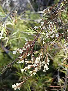 In a 2010 article in the Annals of the Missouri Botanical Garden, a team of several botanists, including Venter, used genetic evidence to perform a cladistic analysis and create a complete phylogeny of the tribe Richeeae and other closely related species. They found that only the subgenus Oreothamnus, pictured below, was monophyletic and that there was strong genetic evidence for D. ophioliticum's clade. The paraphylly of the genus Dracophyllum, as well as the polyphyly of the closely related genus Richea, they argued, suggested that a major taxonomic revision was required.[7] Stephanus Venter revised the genus in 2021, merging the genus Richea into two subgenera, named D. Subg. Cystanthe and D. Subg. Dracophylloides, of Dracophyllum. Though he noted that because the 2010 study was based on plastid sequence data and did not attain some species with strong enough evidence, the subgenera are instead based on morphological characteristics.[8]
