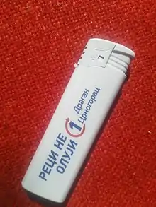 2021 Croatian local elections campaign lighter with what was perceived as controversial slogan "Say no to the Storm" in Serbian Cyrillic.