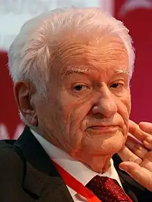 Dragoljub Mićunović (Serbian Cyrillic: Драгољуб Мићуновић Serbo-Croatian pronunciation: [ˈdrǎɡɔʎub miˈt͜ɕǔːnɔʋit͜ɕ]; born 14 July 1930) is a Serbian politician and philosopher. As one of the founders of the Democratic Party, he served as its leader from 1990 to 1994, and as the president of the parliament of Serbia and Montenegro from 2000 to 2004.