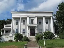 The house was probably built around 1848, not long after residential development began in this part of the city. The building's style is distinctively influenced by the work of Elias Carter, a regionally notable architect of the period, and was at the time somewhat common. The reeding of the columns is a distinctive element of Carter's work, suggesting he may have been involved in the design of this building. The owner, Draper Ruggles, was a principal partner in a plow manufacturer, that he later sold to Oliver Ames. The house was moved a short distance on its lot in 1889–90 to facilitate the construction of 25 Catharine Street.[2] The Draper Ruggles House is currently the location of Channing House, which is a halfway house operated by Advocates Inc. is probably the most successful halfway house in Worcester County and it is also probably one of the best or most successful programs in Massachusetts. Channing House is licensed by the state of Massachusetts and it is also listed by SAMHSA as a fully accredited 6 month substance abuse residential program in Massachusetts.