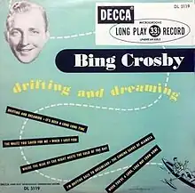 Drifting and Dreaming is a studio album of phonograph records by Bing Crosby with a South Sea Islands flavour. It is one of less than 10 Bing Crosby albums to be featured on all three speeds (LP, 45 rpm and 78 rpm).