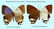 Drina maneia is a species of butterfly belonging to the lycaenid family described by William Chapman Hewitson in 1863. It is found in the Indomalayan realm.[2]