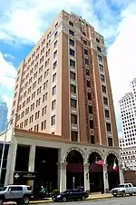 Braniff International Hotels, Inc., a division of Braniff Airways, Inc., of Dallas, Texas, bought the hotel in 1972 and began a $350,000 restoration of the grand lobby of the historic facility. Braniff reopened the hotel to customers on January 15, 1973, to very strong bookings and conference business.[14] Braniff threw an official grand reopening celebration on February 10, 1973. Over 1000 guests attended the gala event that included a parade of every Texas Governor and/or their descendants, since 1886.[15][7] All proceeds from the event went to the Austin Heritage Society, who was strategically instrumental in the resurrection of the Hotel Driskill.[15]