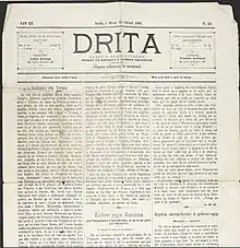 Drita (Drita meaning "the light" in English) is an Albanian literary magazine published by the Association of the Young Modern Artists of Albania (Albanian: Shoqëria e Artistëve të Rinj Modernë).[1] Drita was one of the first magazines in the Albanian language. It has been published for 127 years with some interruptions.[2]