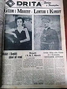 In 1922 the magazine restarted its publications again under Petro Poga. This time it was published in Gjirokaster, and now in an independent Albania.[6] Urani Rumbo published several articles in Drita, which discussed the need to improve the rights and education of girls and women in Albania. In 1920 Urani Rumbo and others had published a declaration which signified the birth of the Women's Union in Albania (Albanian: Lidhja e Gruas, the first prominent feminist organization in Albania.[7] The magazine closed again in 1924 due to clashes with the Fan Noli government.[6] and reopened later and published by Zoi Xoxa. During the Fascist Italy presence in Albania in 1939-43 and the Nazi Germany presence in Albania in 1943-44 the magazine had to close for the third time.[6]