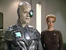 The Borg are a Star Trek villain species famous for their phrase, "Resistance is futile." TV Guide named the Borg #4 in its 2013 list of the 60 Nastiest Villains of All Time.[2] The Borg were introduced on Star Trek: The Next Generation in the episode "Q Who?" (S2E16) and also featured in the critically acclaimed episode "The Best of Both Worlds".[3] They made a major influence on Voyager starting with "Scorpion", which introduced the ex-Borg character Seven of Nine to the main cast, and there were many subsequent Borg-centric episodes.[4]