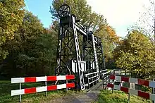 The canal was mostly dug by machines. Excavator 1 Excavateur no. 1 was nothing special. It had been built by Conrad shipyard in Zaandam, and moved on three rails. This excavator did preparatory work, and could move about 300 m3 per day.[29] The Excavator-Transporters No. 2 & 3 excavateur transporteur no. 2 & 3 were of a type new to the Netherlands. They had been built by Lübecker Maschinenbau Gesellschaft. They each moved on four carts on a double track of 90 cm gauge which was 5 m apart. The railroad ties were 7.5 m long and 70 cm apart. The machines had three engines of 50, 10 and 6 ihp. Each machine could excavate 1,250 m3 per day.[29] Excavator-Transporters No. 4 excavateur transporteur no. 4 had been delivered by Machine Factory Hollandsche IJssel (previously De Jongh & Co.) in Oudewater (which still exists) in early summer 1908. It was comparable to 2 & 3.[30]
