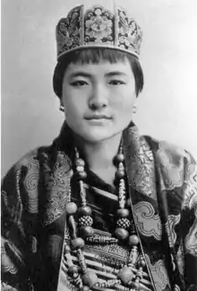 The Druk Gyaltsuen (lit. 'Dragon Queen') is the queen consort of the Kingdom of Bhutan.[1] In the Dzongkha language, Bhutan is known as Drukyul which translates as "The Land of the Thunder Dragon". Thus, while Queens of Bhutan are known as Druk Gyaltsuen ("Dragon Queen"), the Bhutanese people call themselves the Drukpa, meaning "Dragon people".[2]