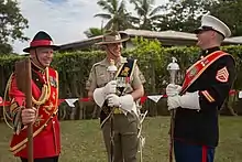 - ↑ "Photograph of WO1 James 'Wiggy' Whitwham MBE, Corps Drum Major RM, 2014". Royal Navy. Retrieved 19 October 2019.