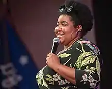 In 2015, she was named a "New Face of Comedy" at the Just For Laughs comedy festival[6] and won the 12th annual StandUp NBC comedy showcase.[7] Her late-night comedy debut followed on Conan in February 2016.[8] A few months later, she won the 2016 Big Sky Comedy Festival in Billings, Montana.[9] Additional TV appearances followed on Comedy Knockout, The Steve Harvey Show,[10] @midnight with Chris Hardwick, and as a correspondent for E! News Daily. Sloan joined The Daily Show as a correspondent in September 2017.[11] Her Comedy Central Stand-Up Presents episode aired in October 2019.[12] She co-hosted the Central Time Zone hour of CNN's New Year's Eve Live along with Don Lemon in 2021.[13][14]