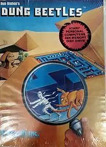 Dung Beetles is an Apple II maze game by Bob Bishop published in 1982 by Datasoft.[1] The gameplay is similar to Pac-Man, but a portion of the maze around the player-controlled character is enlarged as if being viewed through a square magnifying lens.