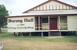 The Durong Public Hall opened on Saturday 14 April 1934. It replaced a smaller building one quarter of the size.[8]