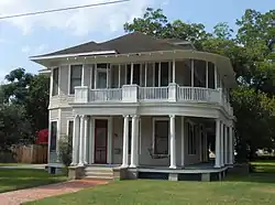 It is an L-plan residence with Ionic columns on the first-floor level of its two-story wrap-around porch.[2]