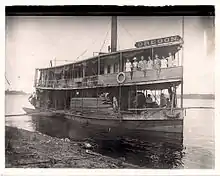 At the same time as the Moons accepted the call to serve, a plea went out for funds to purchase a boat to provide transportation for the missionaries on the Congo River. Prior to that, the missionaries had used dugout canoes. The Oregon churches took up this call and raised the funds for the boat, which was built by Tom Rees and Sons, shipbuilders in Pittsburgh, Pennsylvania. It was assembled and dedicated in October 1909 at the centennial celebration of the Disciples of Christ Church. It was then taken apart and transported in 1,200 different packages by ship and narrow-gauge railway to Kinshasa, on Stanley Pool, in Africa where the British Baptist Mission Society had a station. E. R. Moon had training as a carpenter and, along with Robert Wilson, assembled the S. S. Oregon from June to October 1910. It was a wood-burning, shallow-draft sternwheel river steamer that was 90 feet (27 m) long and had an 18-foot (5.5 m) beam. It had a steel hull that contained about 20,000 rivets. It had a main deck and one upper deck.[5] The native name for the steamship was Nsang'ea ndoci, which means "Good News", appropriate for a missionary undertaking.