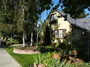 The Earl and Virginia Young House, also known as the Young-Sartorette House, stands as a historic residence in Campbell, California. Constructed in 1928, it served as the home for Earl Young, a successful orchard farmer in the Santa Clara Valley, and his family. The house is historically significant in the Tudor Revival architectural style, which gained popularity in the mid-twentieth century. In 1981, the Herz family relocated both the house and garage to prevent them from potential demolition. The Young-Sartorette House was placed on the National Register of Historic Places on January 8, 2009.[2][3]