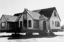 The house changed hands, passing to Collette and Charley Sartorette in 1946, who raised horses on the property.[4] The original location of the house was 14301 S. Bascom Avenue. In 1979, the house faced the threat of demolition due to a zoning change from agriculture to planned development. This action cleared the area for commercial use. In that year, the house was added to the Santa Clara County Heritage Inventory. The new owner, a developer, required to offer the house for free on the condition that they buy a vacant lot and move the house. Relocating the house was the sole means of preserving it. In 1980, the current owners, Joanna, and Rudolf "Rudy" Herz, made the decision to purchase the property from the Sartorette family. In 1981, the Herz family took on the task of relocating 2,500-square-foot (230 m2) residence, moving it a distance of 700 ft (210 m) to the west, onto a smaller lot within the same property. Additionally, they repositioned the home 180 degrees, now fronting White Oaks Road. Unfortunately, the interior and exterior plaster sustained damage during the relocation process. A retired plasterer, Joe Aruta, restored the walls. The restoration of the house and garage was successfully completed in 1985.[2][4][5]