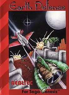 Earth Defense (Chinese: 地球防衛戰; pinyin: Dìqiú Fángwèi Zhàn), credited as The Earth Defend on title screen, is an unlicensed game for the Sega Mega Drive/Genesis; it was developed by AV Artisan and published by Realtec in both North America and Taiwan, without a license from Sega.