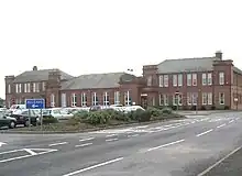 Work on University Hospital Crosshouse, which was commissioned to replace the Kilmarnock Infirmary, began on the site in August 1972 with completion expected in May 1977.[13] The contractor, Melville Dundas & Whitson, encountered difficulties with the water supply and ventilation systems[14] and the facility was only officially opened by George Younger, Secretary of State for Scotland, as Crosshouse Hospital in June 1984.[15] A new maternity unit, which replaced a similar facility at Ayrshire Central Hospital in Irvine was opened in the grounds of the hospital in 2006.[16] In March 2012, the hospital officially became University Hospital Crosshouse as a result of a partnership with the University of the West of Scotland.[17]
