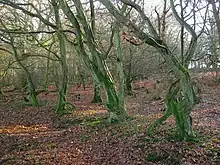 Long Wood (TQ 367 142) has oak, hazel with bluebells in spring and much birch. It has laurel thickets and 12 ancient woodland indicator species. Silver-washed fritillary butterflies and harlequin longhorn beetles can be seen here.[4]