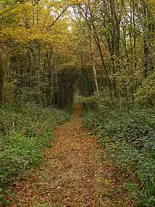 Great and Middle Home Wood are the last remaining large fragments of the wood. Great Home Wood (TQ 372 182) spans the East Chiltington and the Chailey parishes. The northern end had drifts of wild daffodils.[4] The wood has large amount of coppiced oak. They stand with old hornbeam coppice and a mixture of ash and birch poles. There is pine at the south end. The recent re-coppicing has failed because deer have eaten out the inadequately protected regrowth and killed the old coppice stools. Consequently, nightingales or warblers are unlikely to breed here.[4]